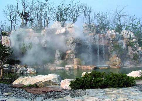 人工造霧系統(tǒng)是由于水霧的蒸發(fā)面積很大,空氣中懸浮的塵埃會被漂浮的水霧俘獲,并降落到地面,從而達(dá)到除塵、凈化空氣的目的。當(dāng)接觸到干熱的空氣,瞬間即會被蒸發(fā),并在此過程中將大量熱量帶走,在炎熱季節(jié)具有很好的降溫效果。