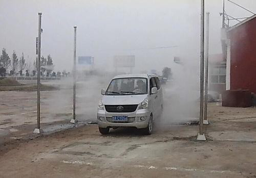 4、側(cè)噴系統(tǒng):對車輛周身進行消毒,常采用四根立柱,形成兩堵對噴霧墻,一個霧化空間