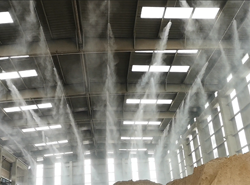 在石灰石熟料堆棚高壓噴霧抑塵項目中,我們采用1套高壓噴霧除塵設備,共安裝了280個霧化噴嘴。實現(xiàn)高空布局霧化噴嘴,整體車間噴霧抑塵。水源采用生產(chǎn)設備冷卻循環(huán)水,耗水、耗電量都較小,且便于操作,可以遠程控制,有效的抑制了粉塵,有效的減少了粉塵爆炸的產(chǎn)生,給員工的工作環(huán)境進行了極大的改善,也減少了空氣污染。