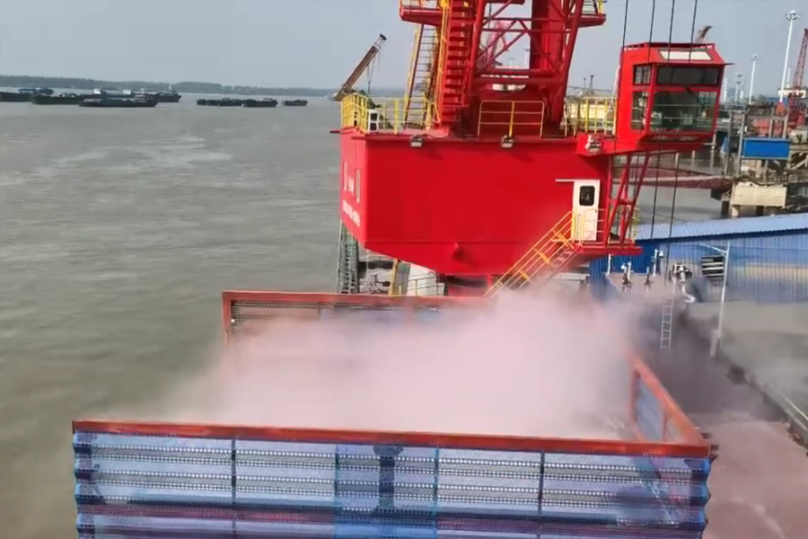 我司與安徽港興重工展開了關(guān)于超凡碼頭高壓噴霧抑塵治理項(xiàng)目的合作。我方技術(shù)人員通過現(xiàn)場勘測、技術(shù)溝通最后,制定最優(yōu)方案。按照業(yè)主需求,共有2處抑塵點(diǎn)需要配置高壓噴霧抑塵設(shè)備進(jìn)行抑塵治理:漏斗上料口與皮帶機(jī)下料口。所以新建系統(tǒng)必須確保無組織排放達(dá)標(biāo);從顆粒物產(chǎn)生的源頭進(jìn)行控制,減少顆粒物的無組織散發(fā)。在系統(tǒng)設(shè)計(jì)選型中,貫徹工藝技術(shù)先進(jìn)、設(shè)備選型成熟合理、便于現(xiàn)代化組織管理、結(jié)構(gòu)全面優(yōu)化的原則,除考慮一次性投資成本,尤其考慮使用的長期維保成本以及能耗成本。選擇成熟、穩(wěn)定的工藝路線,對設(shè)備、儀表等選型本著可靠、適用的原則,同時(shí)針對塵源排放特點(diǎn),加大系統(tǒng)的靈活性,以適應(yīng)顆粒物排放波動性的變化。